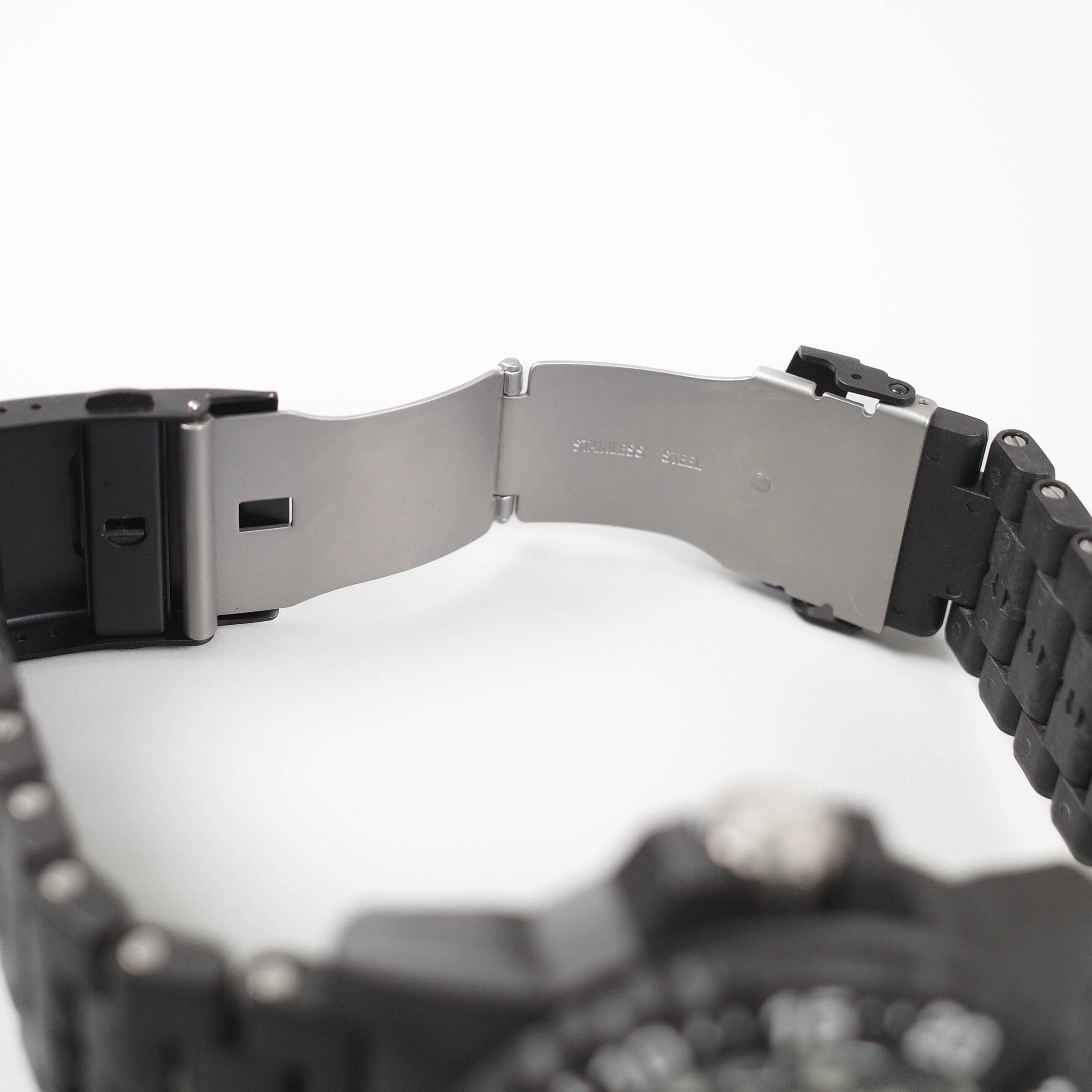 その後、FBIやSWATでも採用され、世界でお墨付きのミリタリーウォッチとして認知されるようになりました。2006年に商標登録されたCARBONOXといわれる新素材を採用し、軍用時計本来の目的である「過酷な条件での高い機能性」を開発コンセプトにしたミリタリーウォッチです。