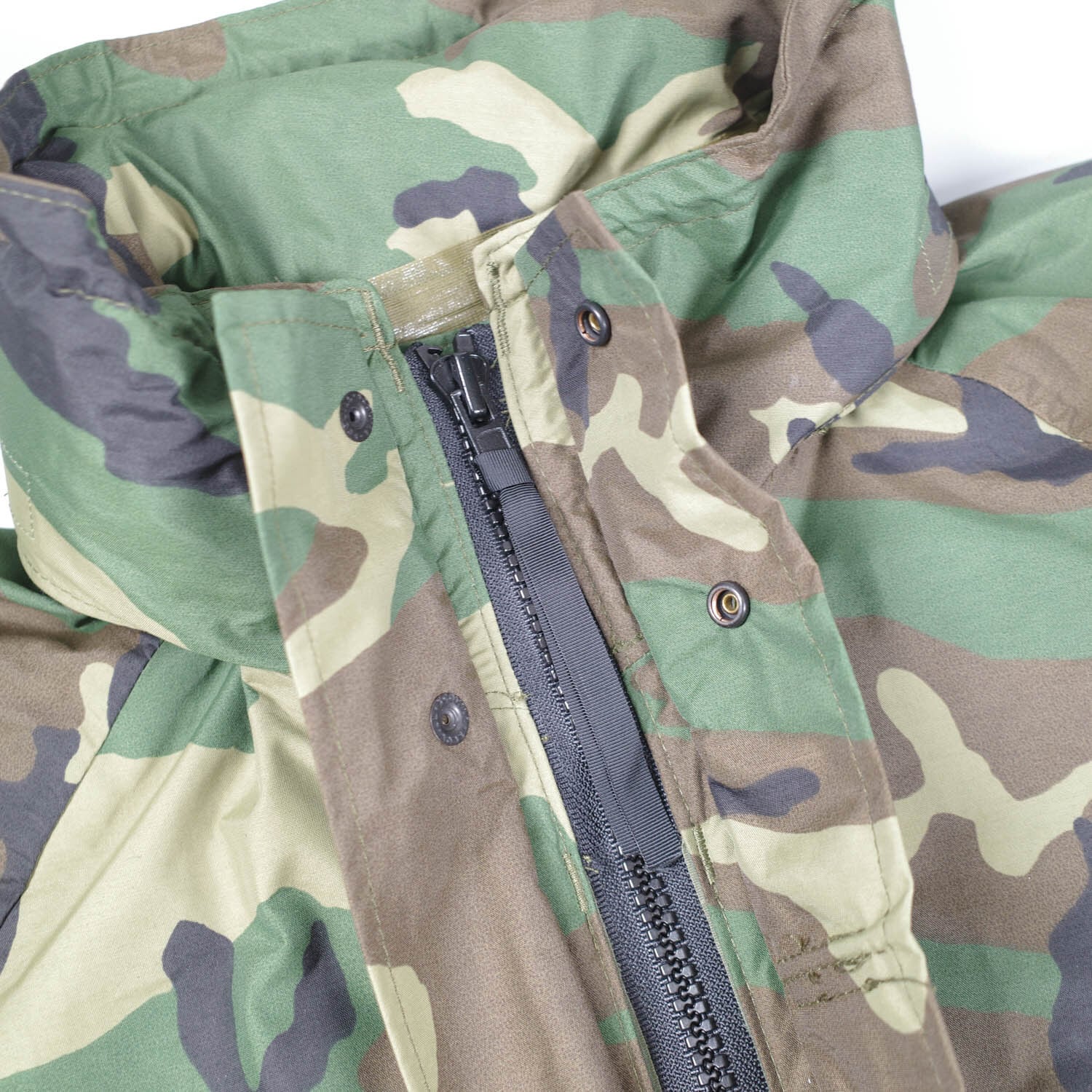 防水性、保温性、耐久性のある透湿性防水生地を備えた、極寒冷地被服システムの第二世代(GEN2)エクワックスパーカー。「ECWCS」とは、アメリカ軍に採用されている極寒冷地被服システム(Extended Cold Weather Clothing System)の略称で、米国・マサチューセッツ州にあるアメリカ陸軍ネイティック研究・開発・技術センターにより、1980年代に開発されたウェアリングの規定です。