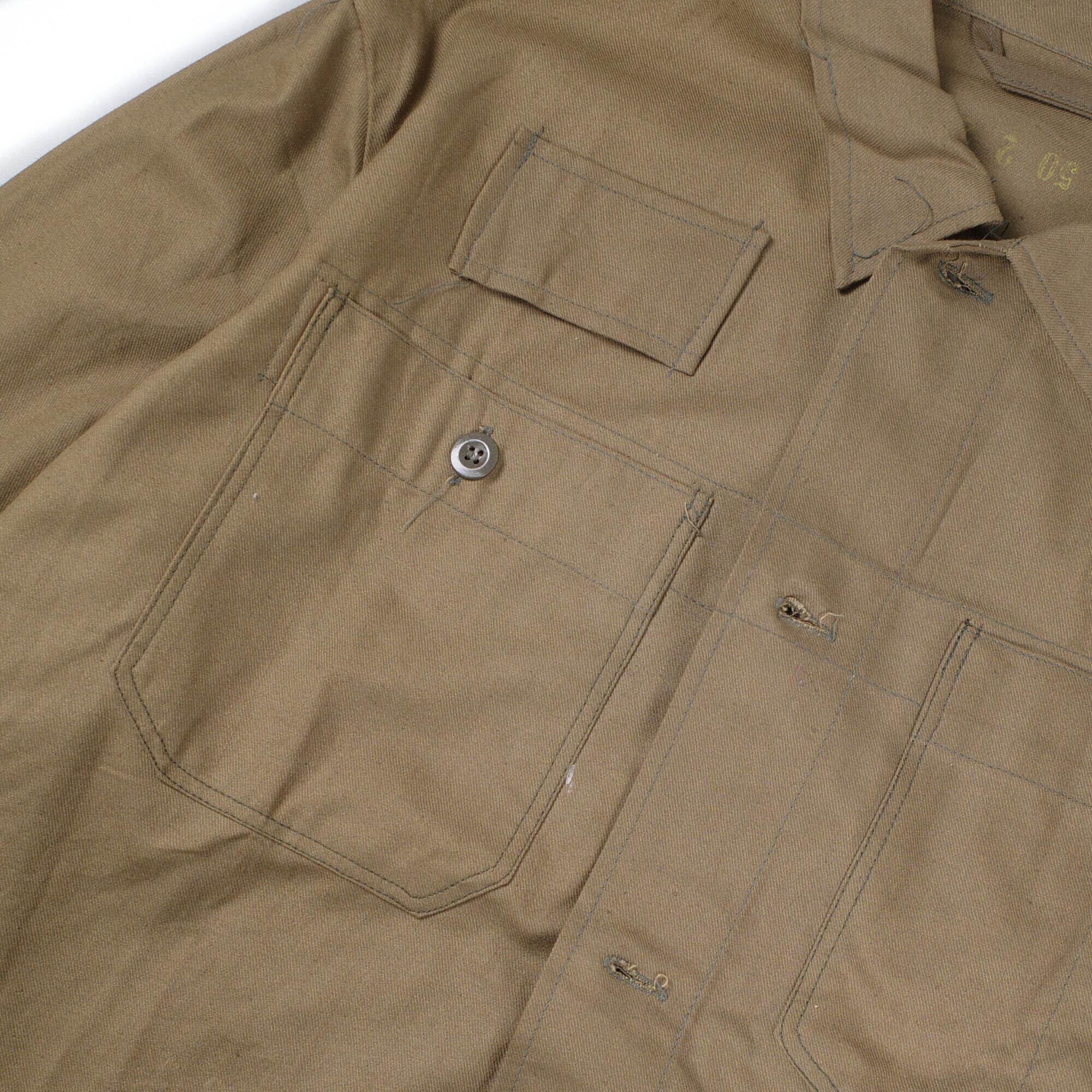 チェコ軍実物のメカニック ワークジャケットです。裏地なしのコットンツイル地でシャツジャケットの様にサラッと羽織れる一着。ポケットは左胸と左右の腰にパッチポケットが付いています。袖口はボタンで絞ることができます。