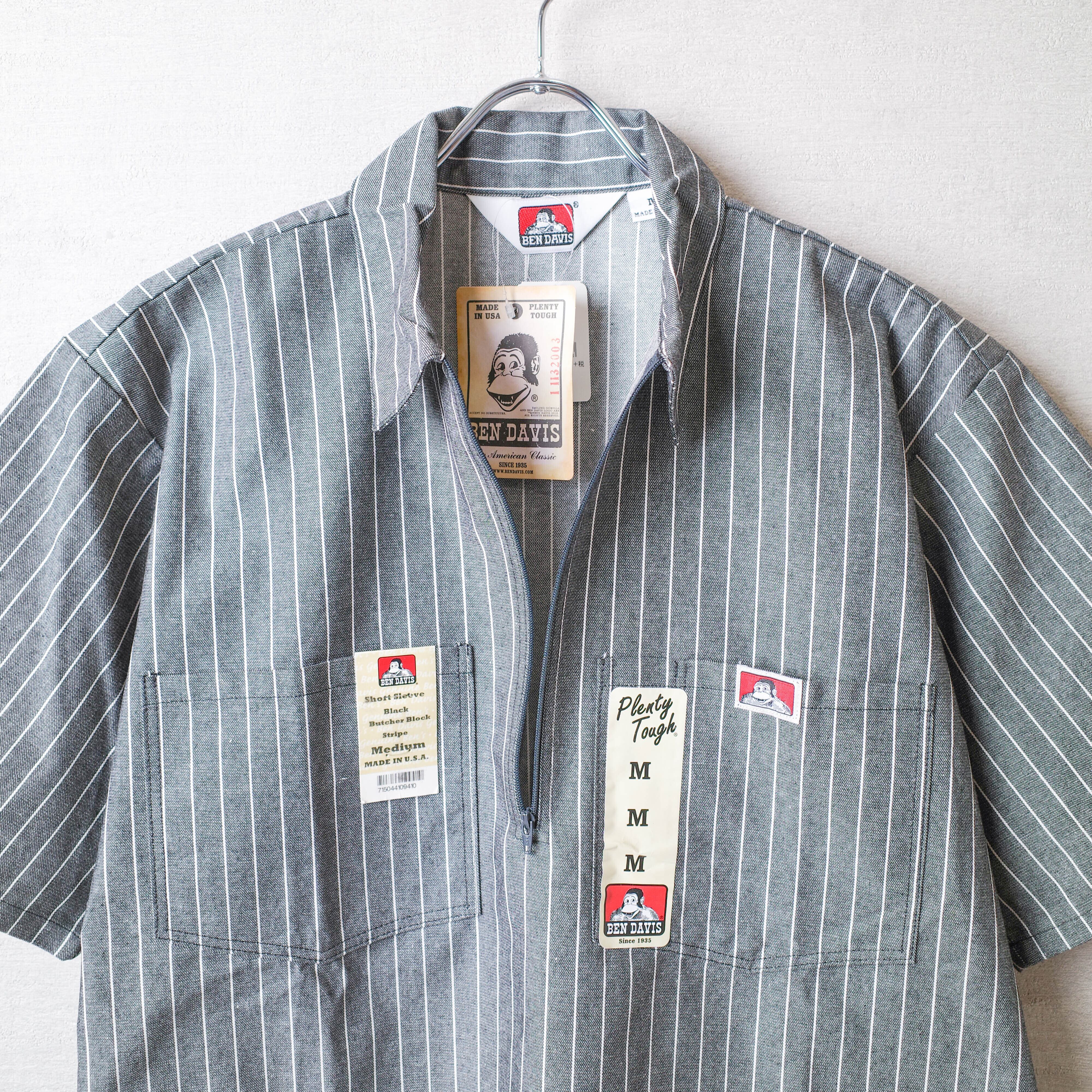 BEN DAVIS / ベンデイビスのハーフジップの半袖ワークシャツ「SHORT SLEEVE STRIPED 1/2 ZIP SHIRT」。