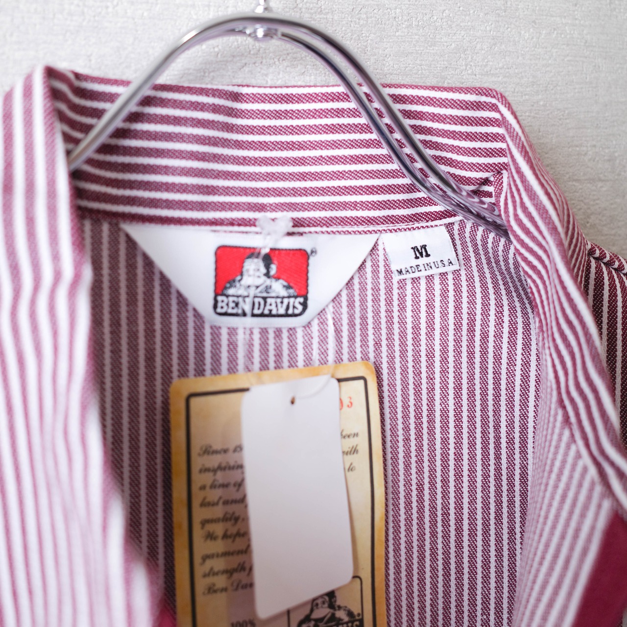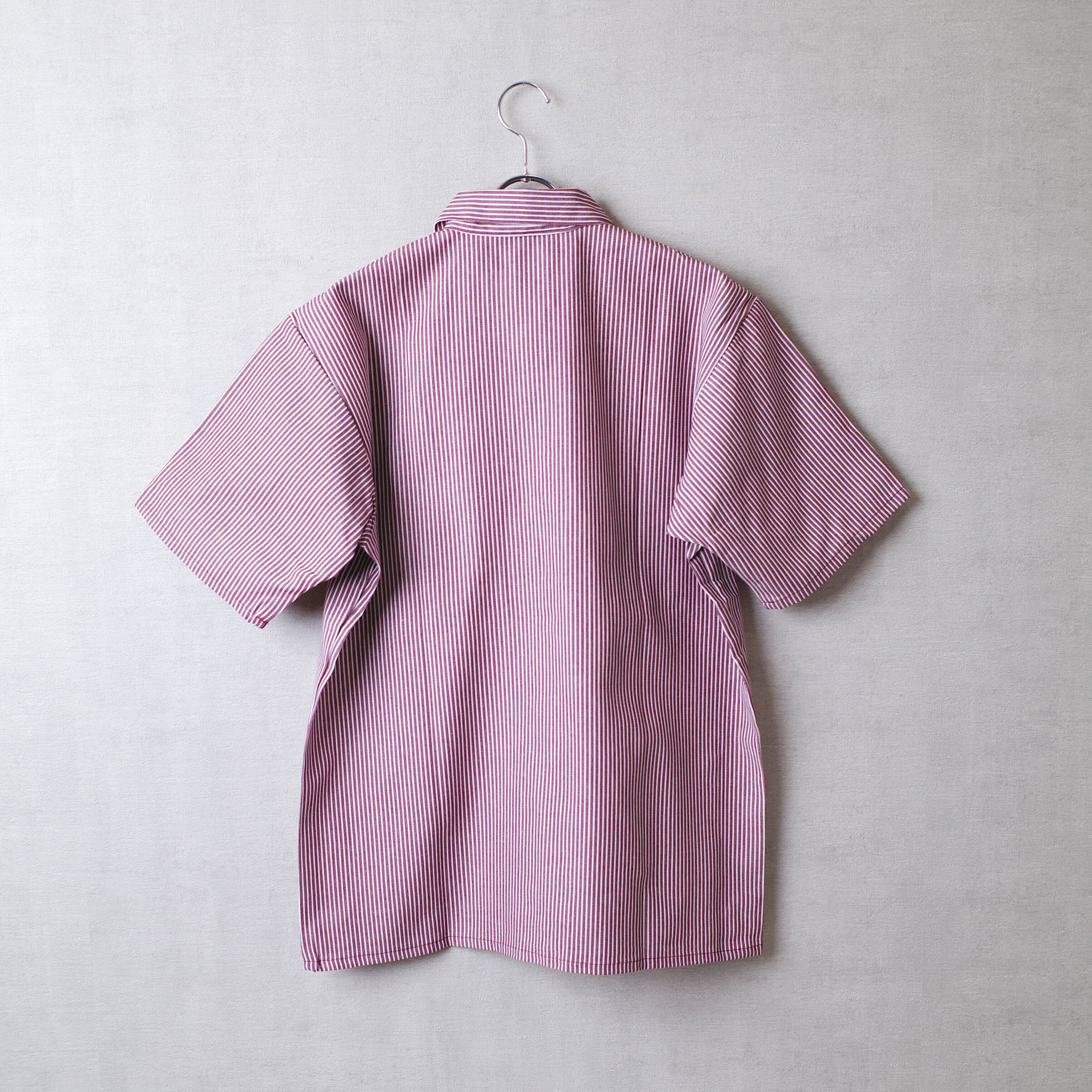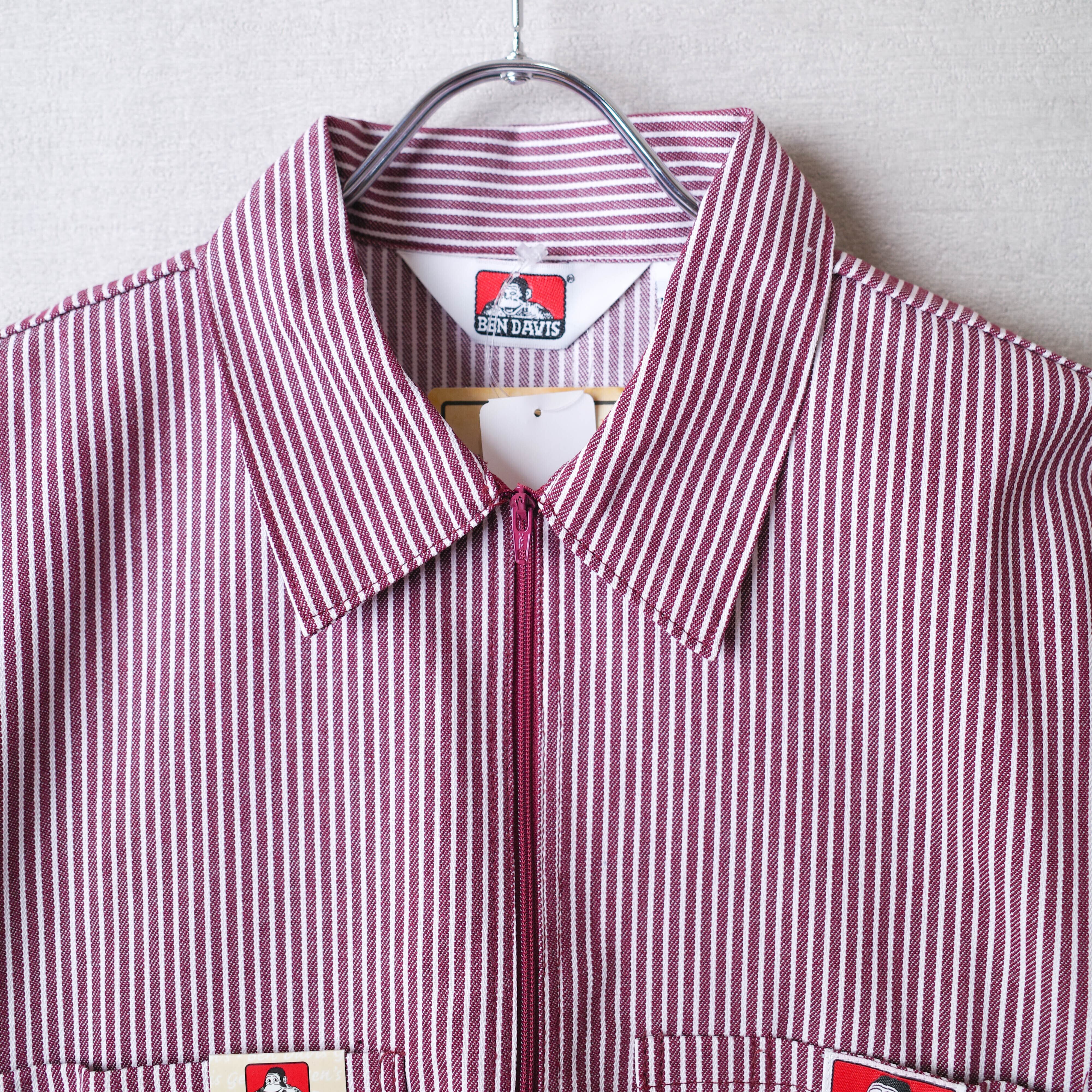 BEN DAVIS / ベンデイビスのハーフジップの半袖ワークシャツ「SHORT SLEEVE STRIPED 1/2 ZIP SHIRT」。