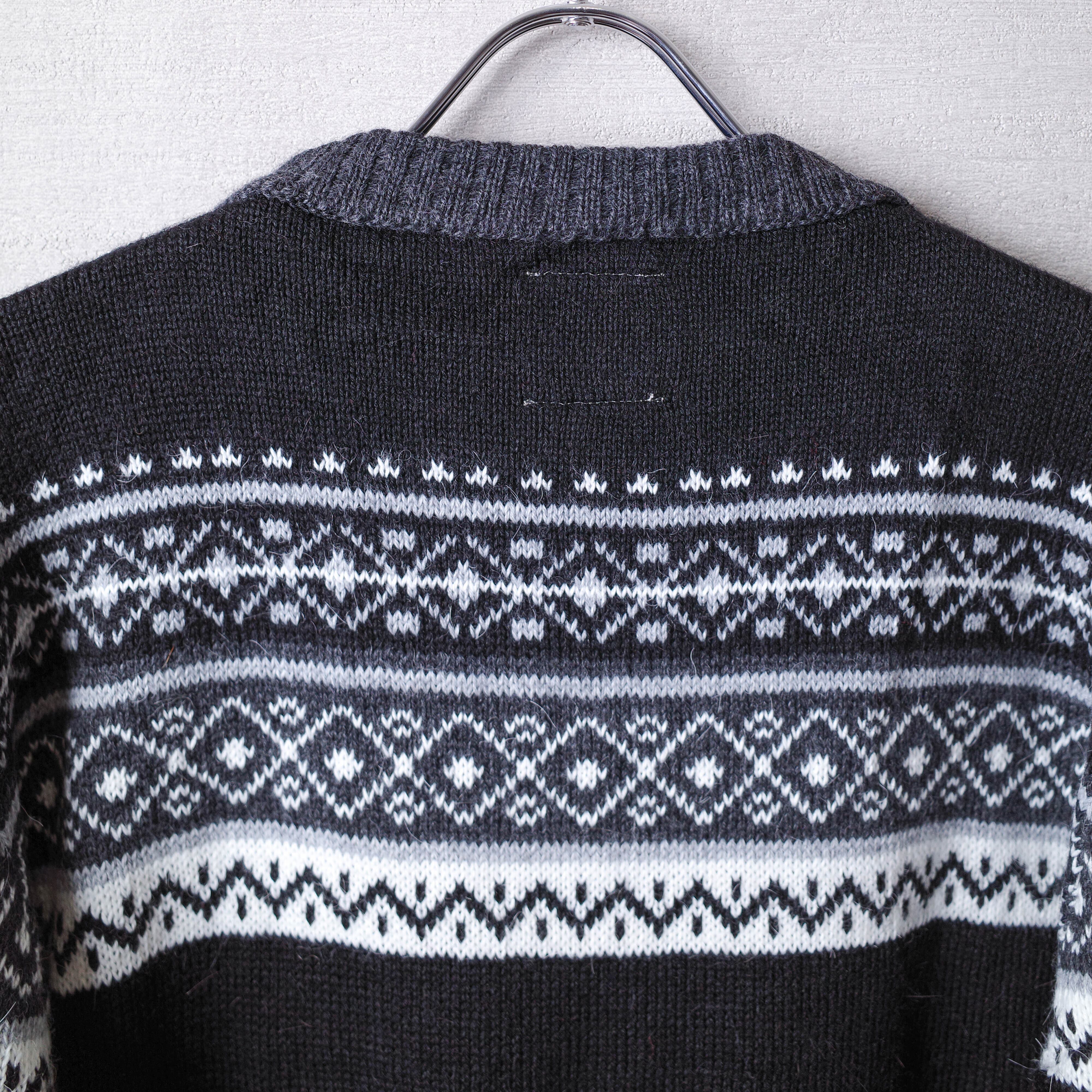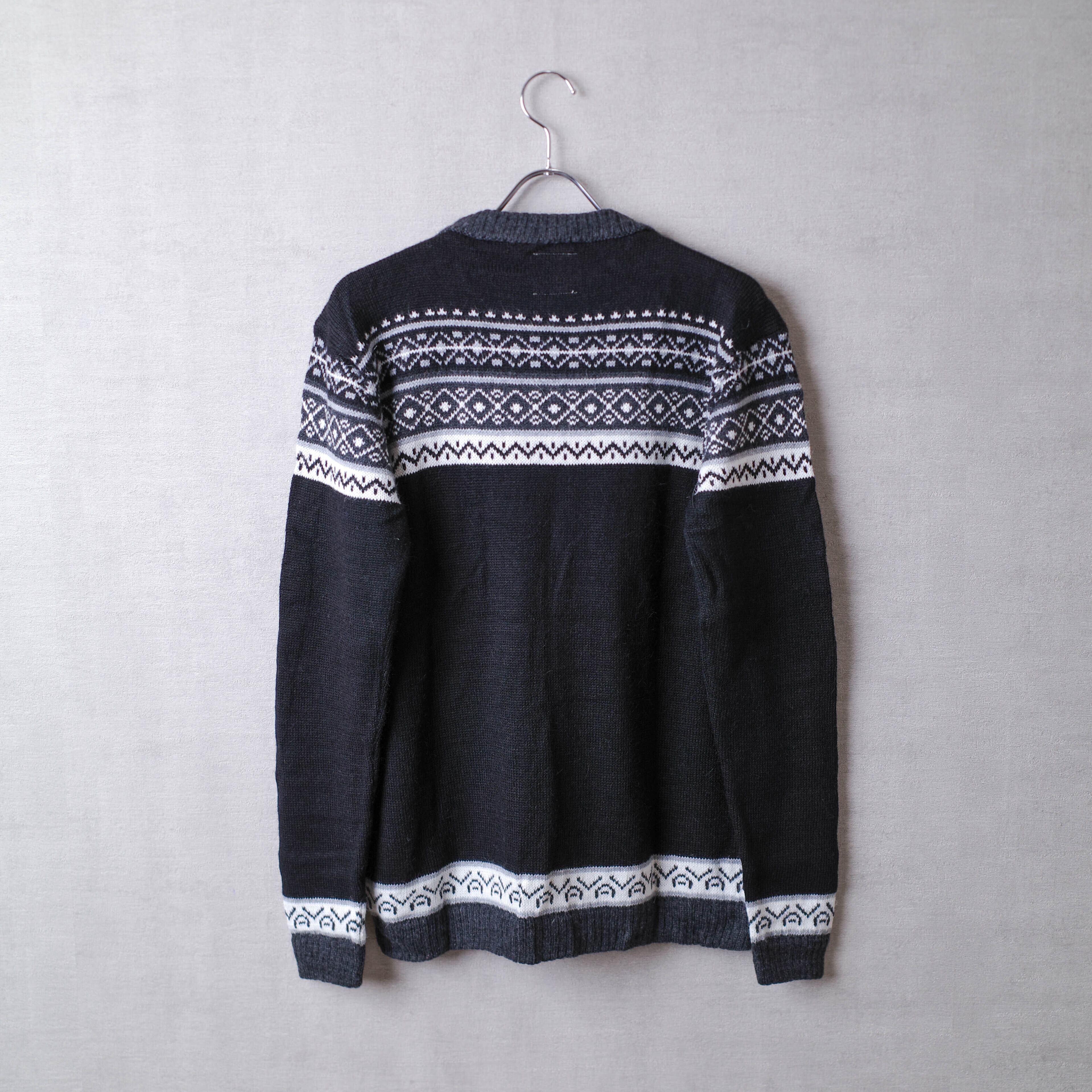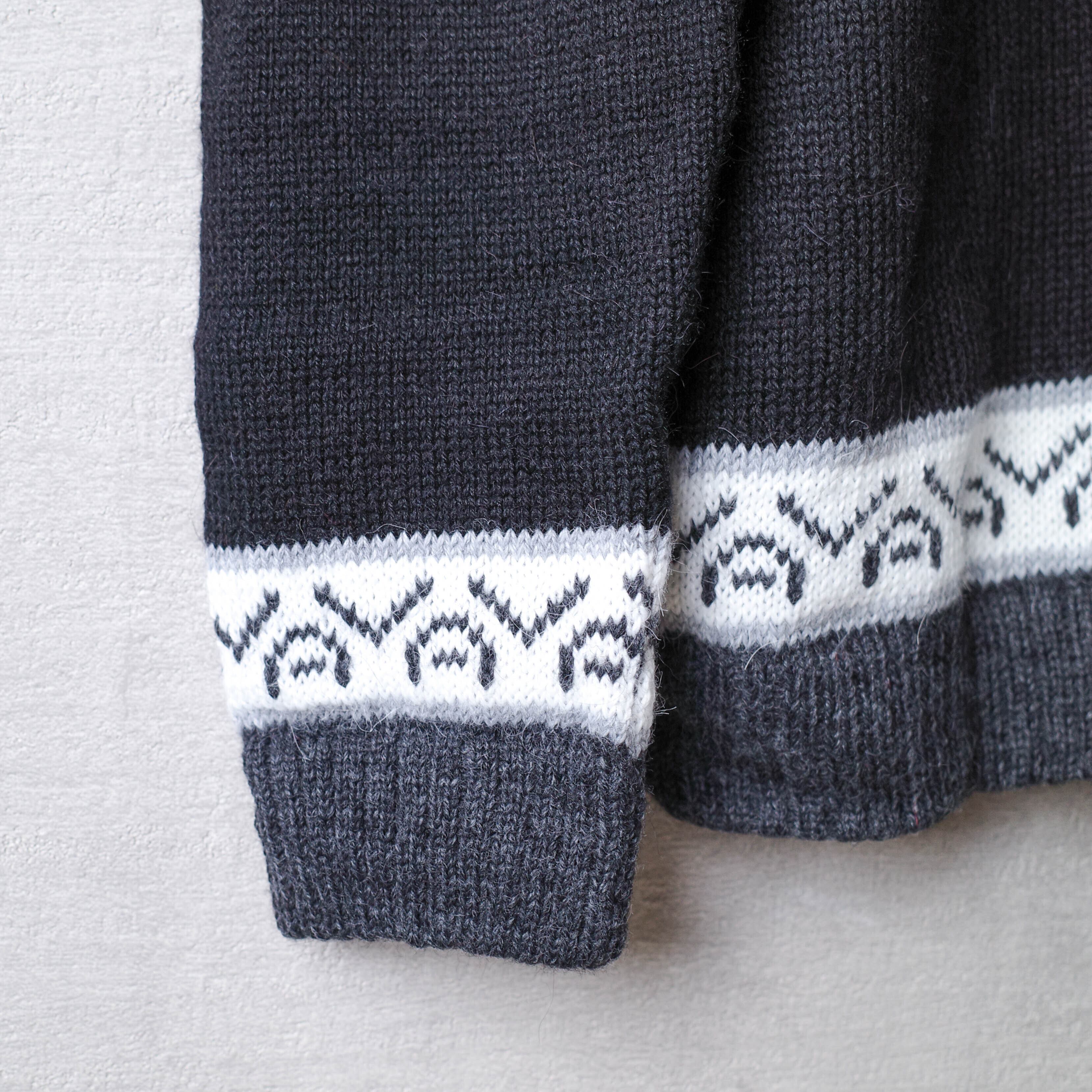 こちらは、伝統的な製法で1つ1つ手編みで丁寧に編まれており、厚手ながら滑らかな風合いで保温性の高い、ノルディックタイプのクルーネックセーターです。