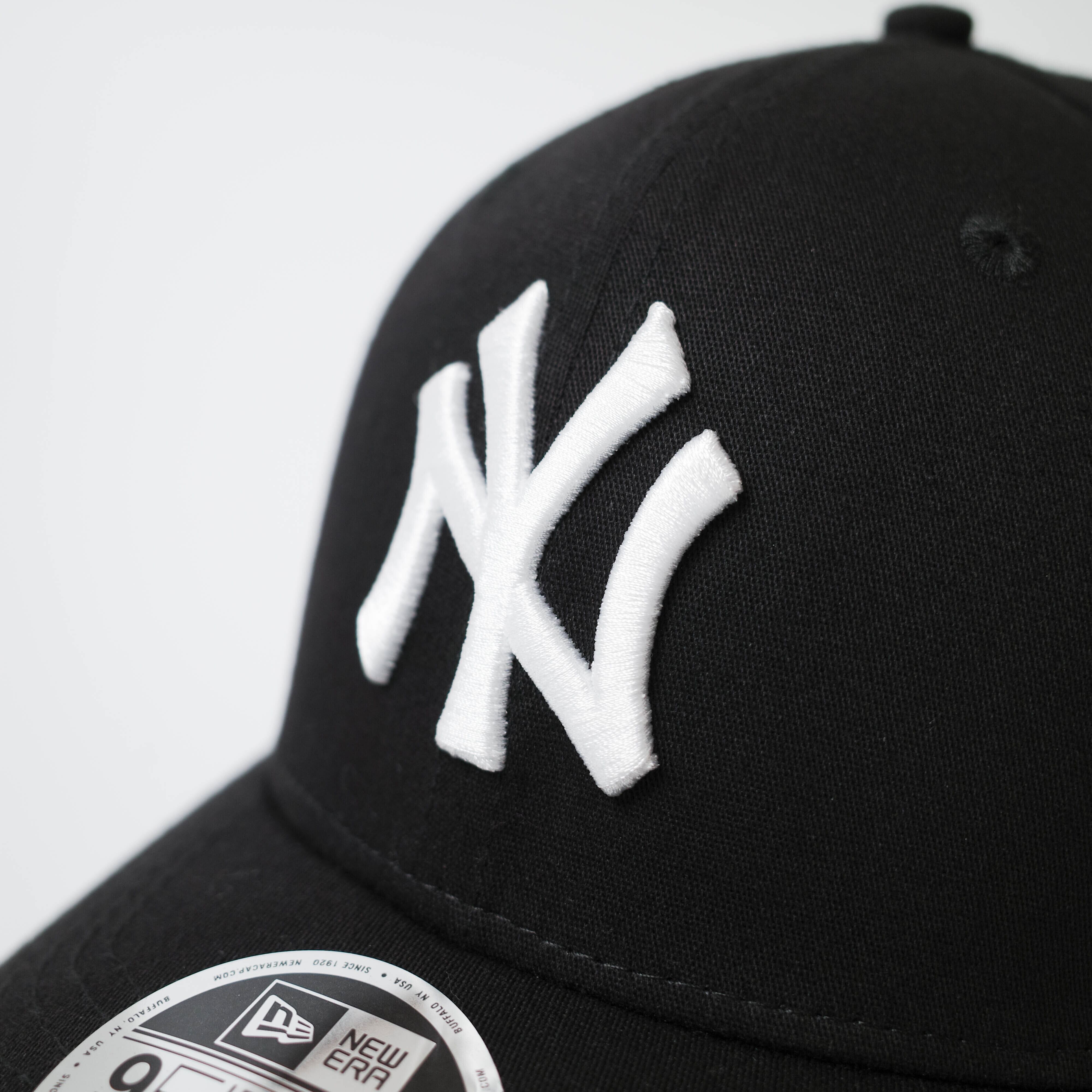 生地とスウェットバンドに伸縮性をもたせています。フロントにニューヨーク・ヤンキースのロゴをレイアウト。カーブドバイザー仕様。