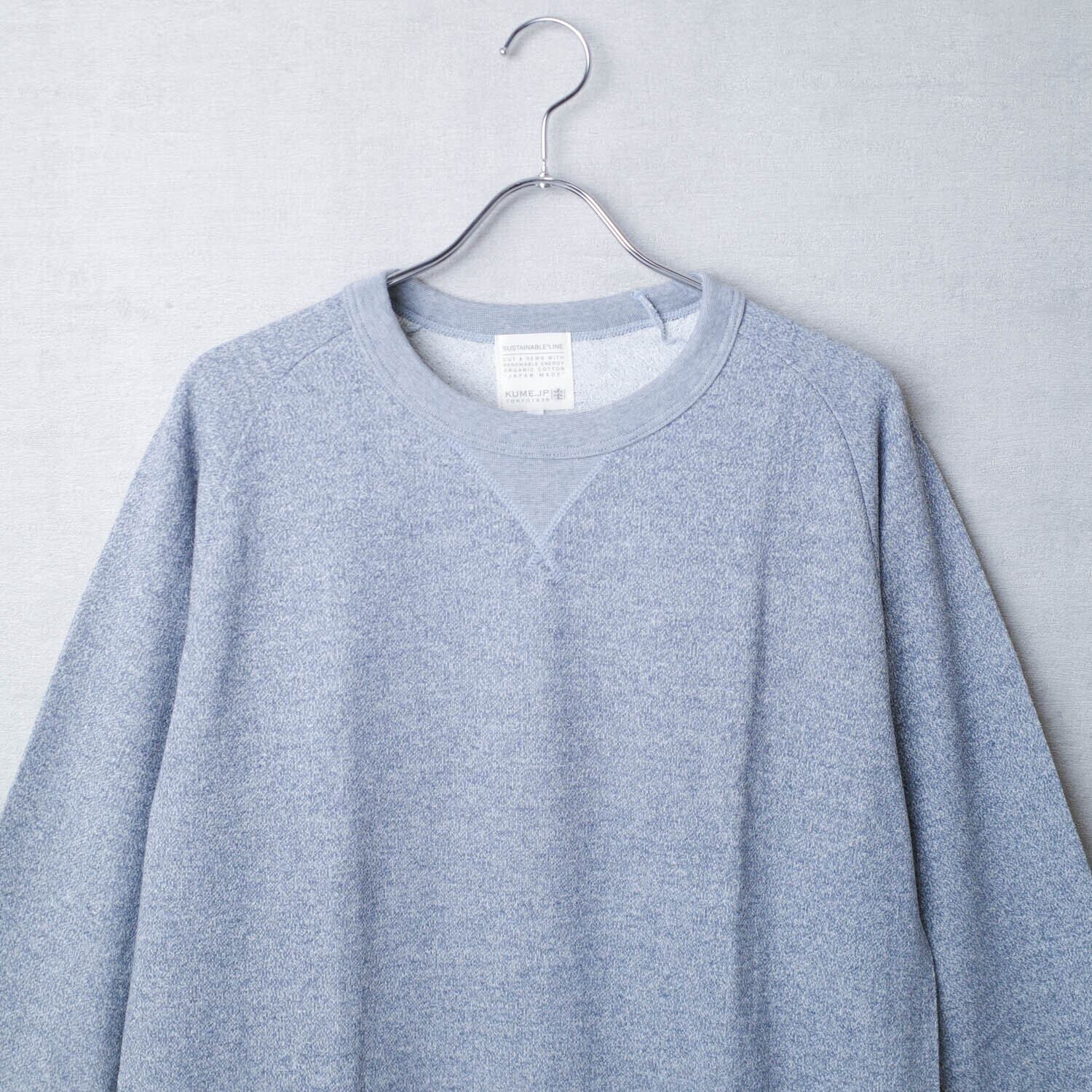 日本の気候に合った軽やかで薄手の生地を、衿もとから脇下に切り返しを入れたラグランスリーブですっきりと仕立てる事で、身体のラインに自然にフィットしとても動きやすく、重ね着でコーディネイトもしやすい長い季節着ていただける1枚です。大粒の杢目が魅力の3色に白・黒・鶯茶・濃藍を加えた7色のバリエーションです。テンションをかけずにゆっくりと編み上げる旧式の吊り編み機。空気を含ませながらふっくらと編み上げられたスウェット生地は軽やかで優しい着心地と、薄手とは思えない暖かさを実現します。綿素材なので気軽に洗濯できるのも魅力です。